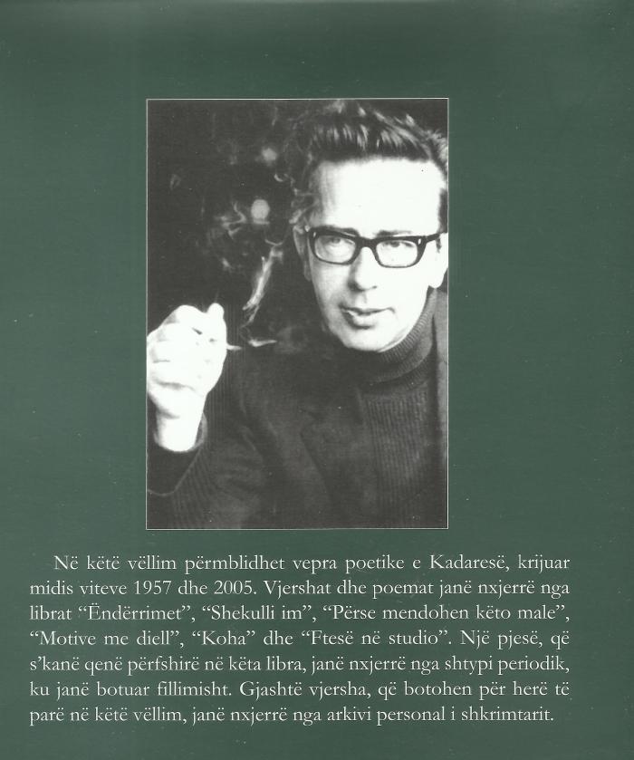 Asnjëherë nuk dihet si lind shkrimtari. Epoka, vendi, familja mund të thonë diçka mbi të. Prapëseprapë, ato nuk mund të na e thonë dhe atë tjetrën. Si ndodh që po nga ai mjedis, qoftë dhe nga po e njëjta familje, vijnë në jetë dhe individë të tjerë, të cilët mund të jenë gjithkushi, por kurrë nuk do ta kenë fatin e veçantë, fatin që të bëhen emra të shquar në letërsi? Megjithatë, qoftë për traditën e deritashme në paraqitjen e një libri, qoftë për arsyen se ky vëllim i shtatë i veprave sjell përmbledhjen më të plotë të të gjithë krijimtarisë poetike të Ismail Kadaresë nga fillimet e deri më sot, janë të pashmangshme në këtë parathënie disa të dhëna të përgjithshme mbi jetën dhe mbi poezinë e autorit. Ismail Kadare, sot shkrimtar i njohur në radhë të parë për prozën, prej vitesh ka shkruar e botuar disa përmbledhje me vjersha e poema. Madje, deri te botimi i romanit “Gjenerali i ushtrisë së vdekur”, më 1963, njohjen e tij më të madhe në Shqipërinë e kohës e ka pasur si poet.