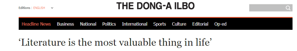 Intervistë dhënë shtypit koreanojugor me rastin e marrjes së çmimit ndërkombëtar „Park Kyung-ni Literature Award“