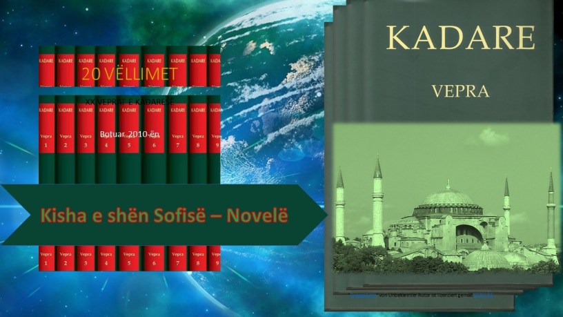 Ai hetonte fytyrën e sulltanit për të kuptuar ç’vendim do të merrte. Korat e arta rrëzéllinin vajtimthi. Fytyrat e Krishtit e të nënës së tij, madje, dy perandorët e pikturuar të rënë në gjunjë përpara tyre, ishin të gjithë të pikëlluar. Ndihej ende era e qirinjve, dhe e temjanit të meshës së fundit, mbajtur një ditë më parë. Sulltani ngriti prapë kryet drejt dritës së padurueshme, që vinte nga kulmorja. Arkitekt Kauri i mori me mend fialët e tij : Té shembet kjo dritë e paturpshme. Të zhbëhet! Qysh tani. » » ( *Pjesa e I – rë nga Novela “ Kisha e shën Sofisë“ e Ismail Kadaresë , shkruar në prill 1994)